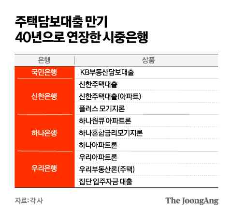 국민은행 외에도 신한은행, 하나은행, 우리은행 등 다양한 은행에서 주택담보대출 상품을 제공합니다. 아래 표는 각 은행의 대출 상품을 비교한 것입니다.