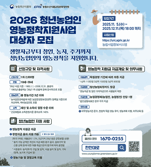 [2] 농림축산식품부 – 공고 > 2026 청년농업인 영농정착지원사업 시행지침