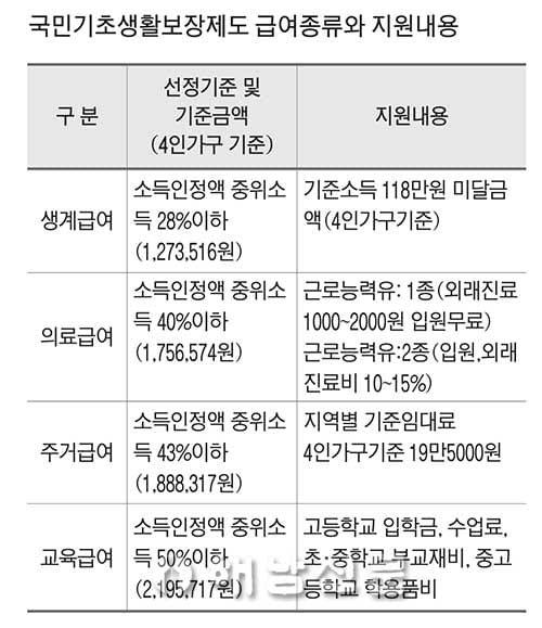 국민기초생활보장제도의 종류
