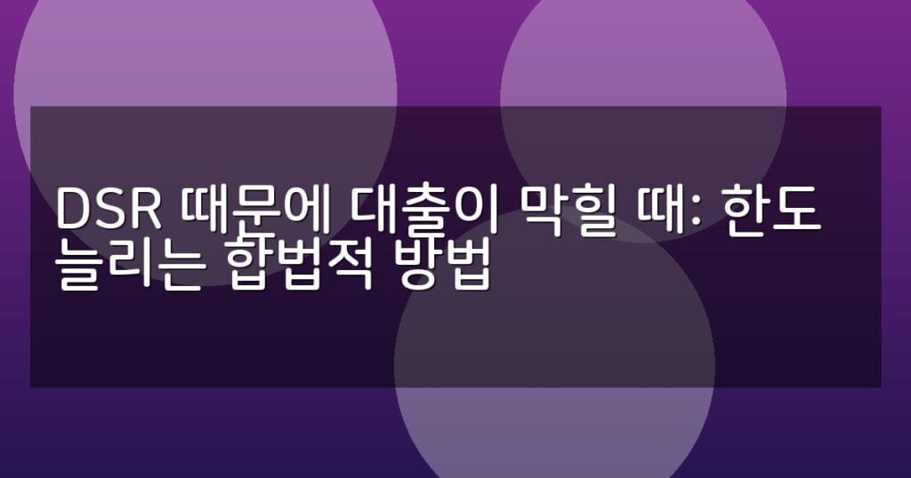 DSR 규제로 대출 한도가 부족할 때 합법적으로 한도를 늘리는 방법을 자세히 안내합니다. 소득 증빙 강화, 부채 관리, 정부 지원 대출 활용법까지 실용적인 정보를 제공합니다.