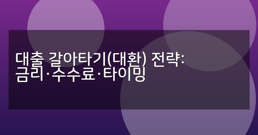 대출 갈아타기 전략을 금리, 수수료, 타이밍 중심으로 상세 분석합니다. 최적의 대환 시기와 절차, 금융기관 상품 비교까지 한눈에 확인하세요.