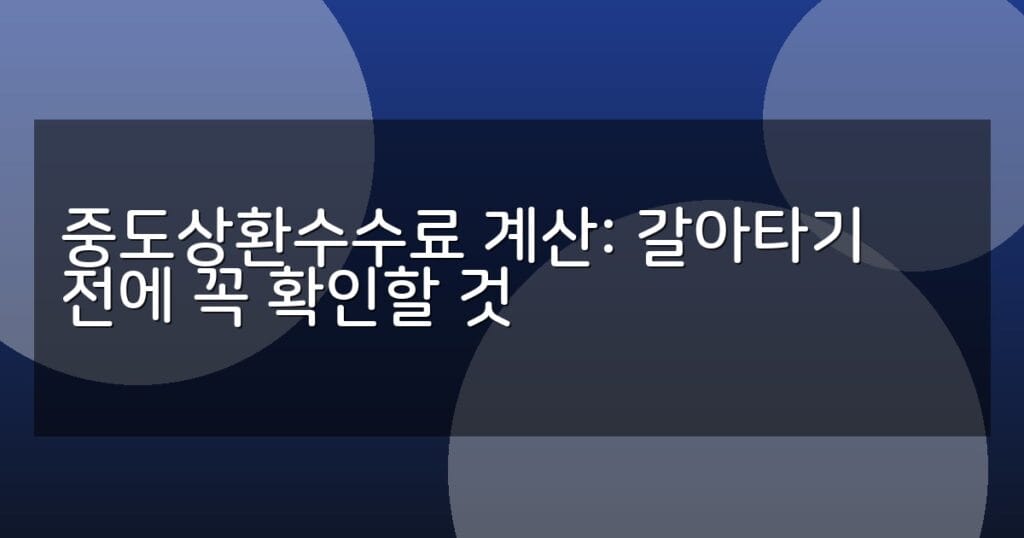 중도상환수수료 계산법과 대출 갈아타기 전 필수 확인 사항을 자세히 안내합니다. 수수료 면제 조건, 지원 정책, 신청 절차까지 꼼꼼히 비교해 보세요.