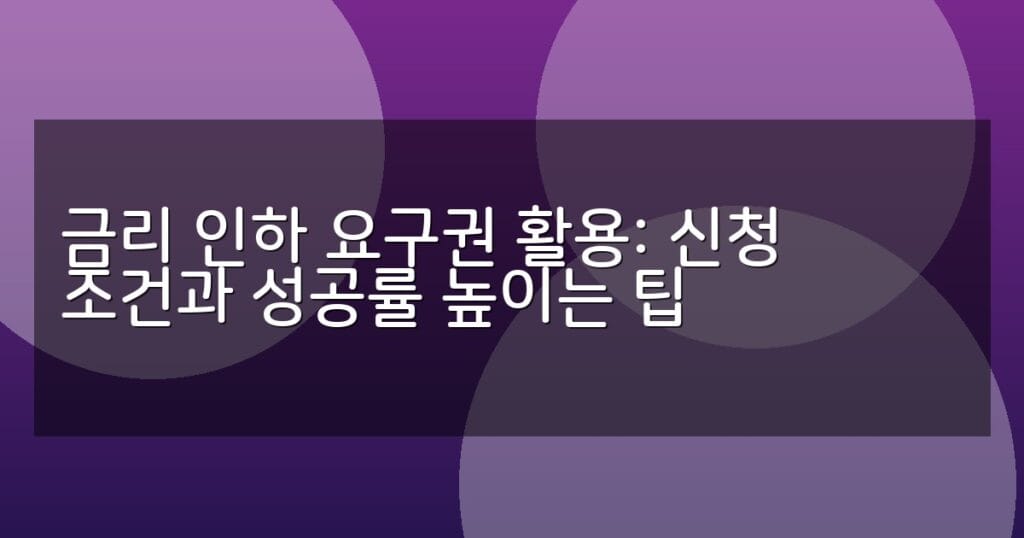 금리 인하 요구권 활용법과 신청 조건, 성공률 높이는 팁을 상세히 안내합니다. 단계별 신청 절차와 FAQ까지 한눈에 확인하세요.
