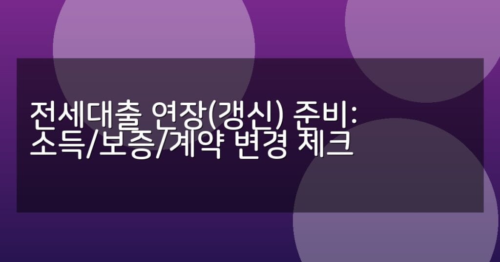 전세대출 연장(갱신) 준비: 소득/보증/계약 변경 체크
