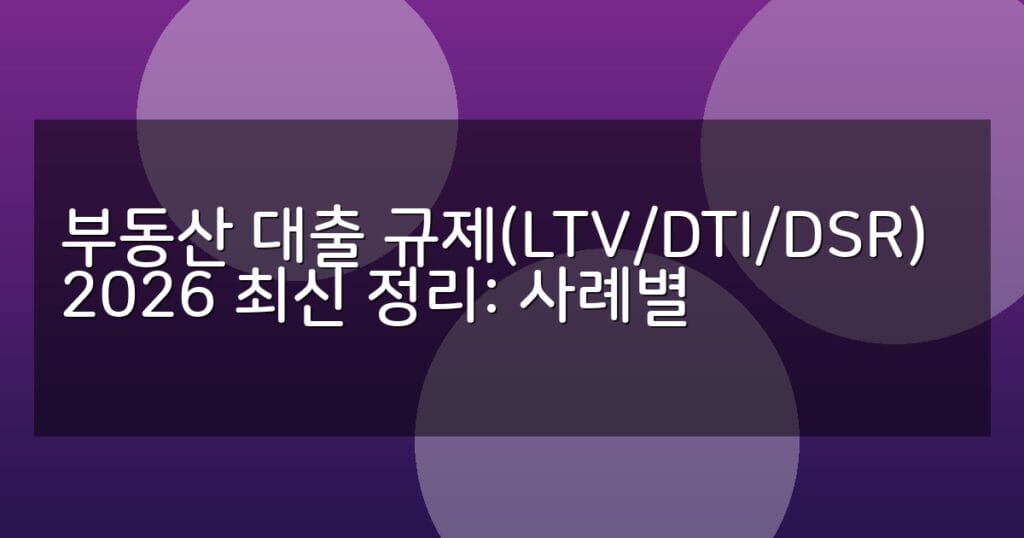 2026년 최신 부동산 대출 규제(LTV, DTI, DSR)와 사례별 적용법을 상세 분석합니다. 대출 한도 및 신청 절차를 표와 함께 쉽게 이해하세요.