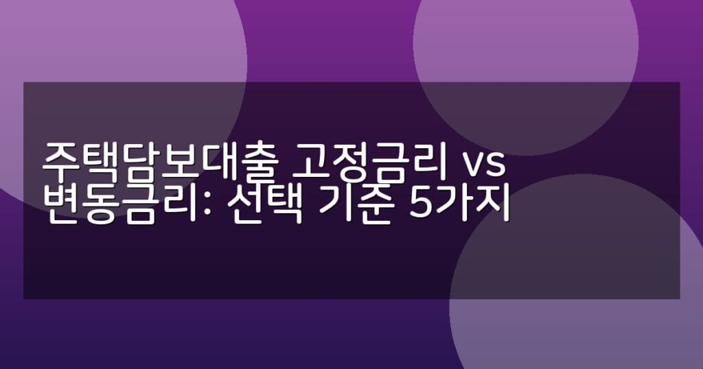 주택담보대출 고정금리와 변동금리의 차이와 선택 기준 5가지를 상세 비교표와 함께 안내합니다. 금리 변동 위험 관리와 신청 절차까지 한눈에 확인하세요.