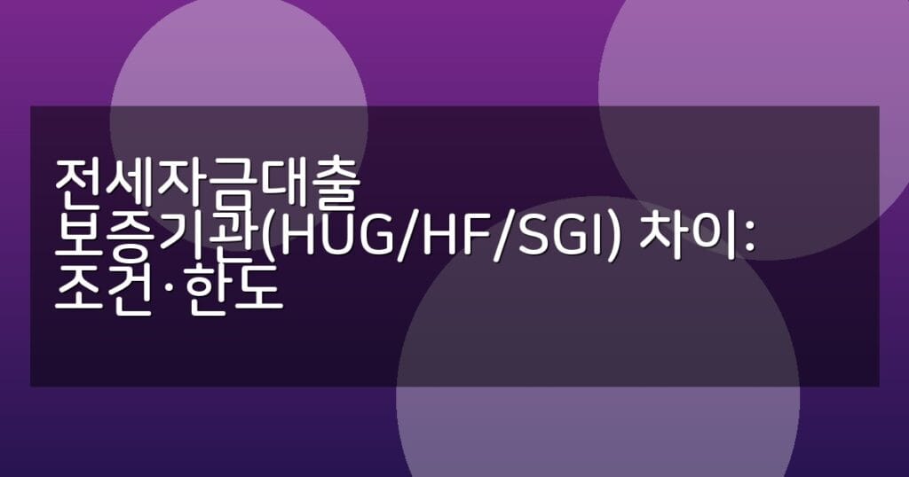 전세자금대출 보증기관(HUG/HF/SGI) 차이: 조건·한도