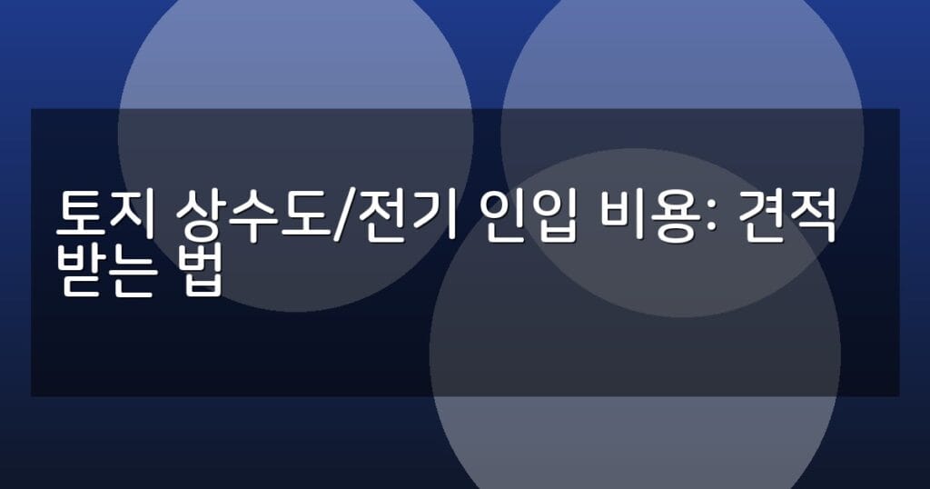 토지 상수도와 전기 인입 비용 산출과 견적 받는 법을 상세히 안내합니다. 비용 요소, 신청 절차, 지원 제도 및 FAQ까지 한눈에 확인하세요.
