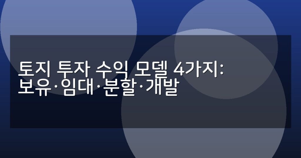 토지 투자 수익 모델 4가지(보유·임대·분할·개발)를 상세 분석하고 장단점, 수익 구조, 신청 절차 및 FAQ를 실무적으로 안내합니다.
