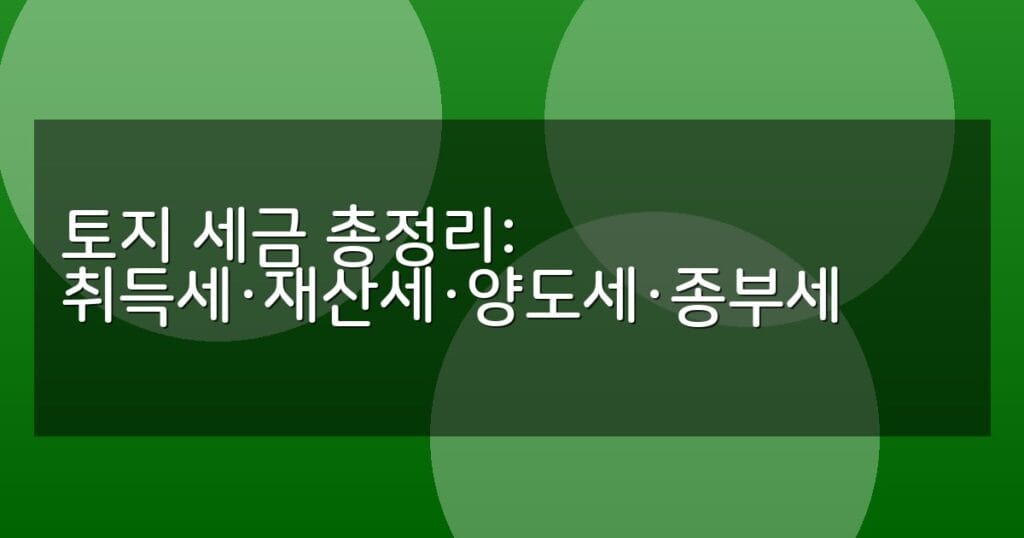 2026년 최신 토지 세금 가이드. 취득세, 재산세, 양도소득세, 종합부동산세의 계산법과 신고 절차를 표와 함께 상세히 안내합니다.