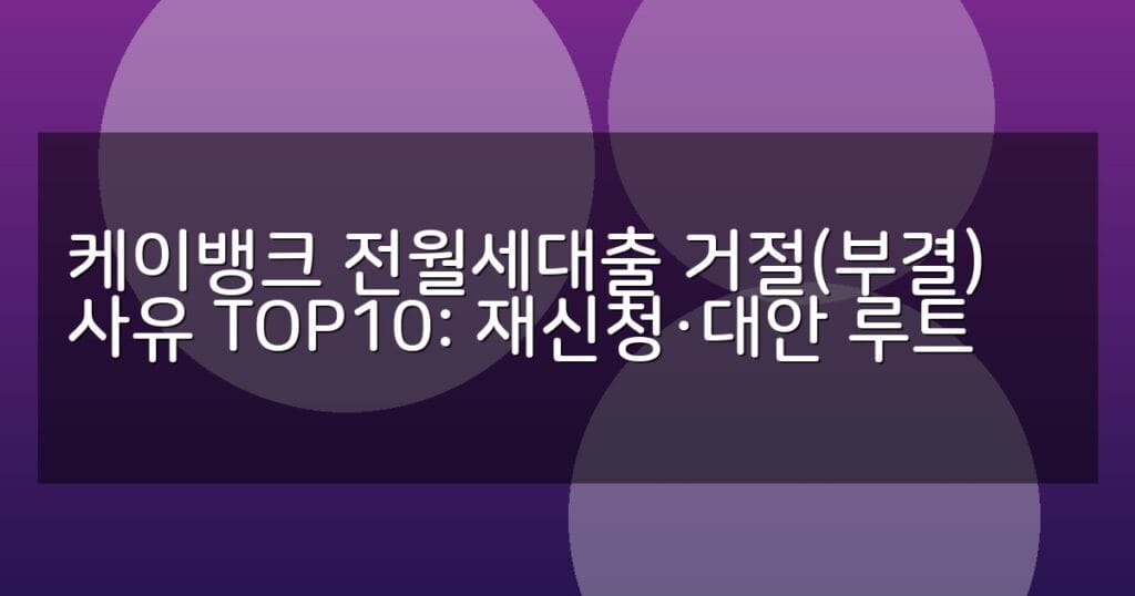 케이뱅크 전월세대출 거절 사유 TOP10과 재신청 방법, 대안 대출 상품 비교를 통해 성공적인 대출 신청 가이드를 제공합니다.