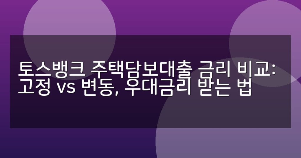 토스뱅크 주택담보대출 고정금리와 변동금리 비교 및 우대금리 받는 법을 상세 안내합니다. 금리 조건별 표와 신청 절차를 통해 맞춤 대출 선택에 도움을 드립니다.
