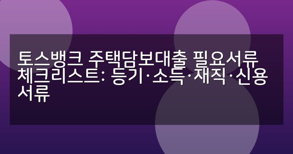 토스뱅크 주택담보대출에 필요한 등기, 소득, 재직, 신용 서류를 상세 체크리스트와 표로 정리했습니다. 신청 절차와 FAQ까지 포함한 완벽 가이드.