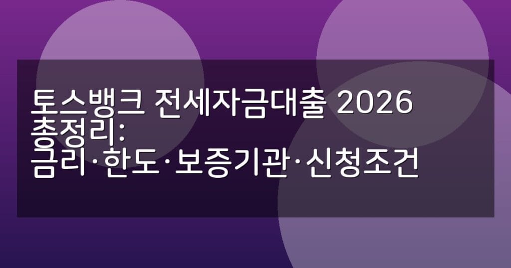 2026년 토스뱅크 전세자금대출 금리, 한도, 보증기관, 신청조건과 절차를 상세 비교표와 함께 안내합니다. 최신 정보 확인 필수.