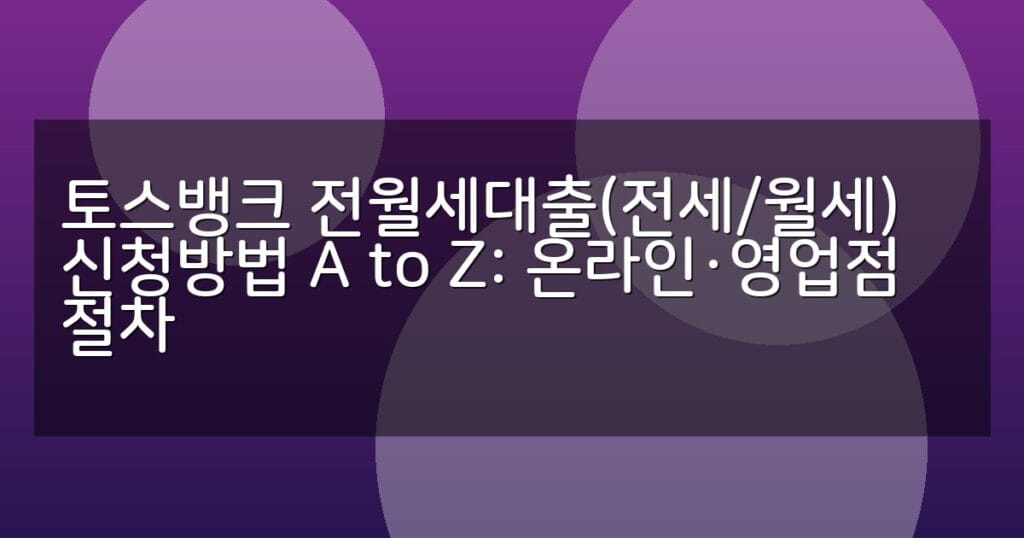 토스뱅크 전월세대출의 온라인 및 영업점 신청 절차를 상세히 안내합니다. 전세·월세대출 조건 비교와 FAQ까지 한눈에 확인하세요.