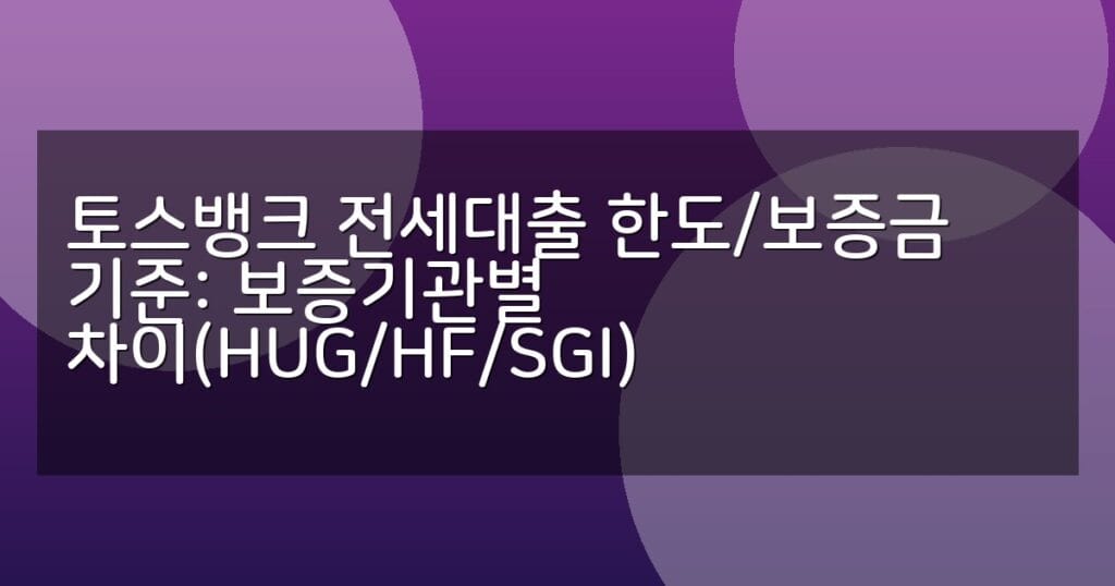 토스뱅크 전세대출의 한도와 보증금 기준을 HUG, HF, SGI 보증기관별로 비교 분석하고 신청 절차와 유의사항을 자세히 안내합니다.
