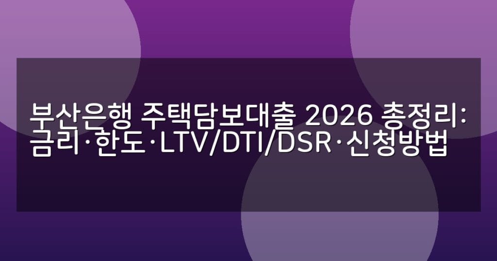 2026년 부산은행 주택담보대출 금리, 한도, LTV·DTI·DSR 규제, 신청 방법을 상세히 안내합니다. 단계별 절차와 비교표, FAQ로 대출 준비를 완벽 지원합니다.