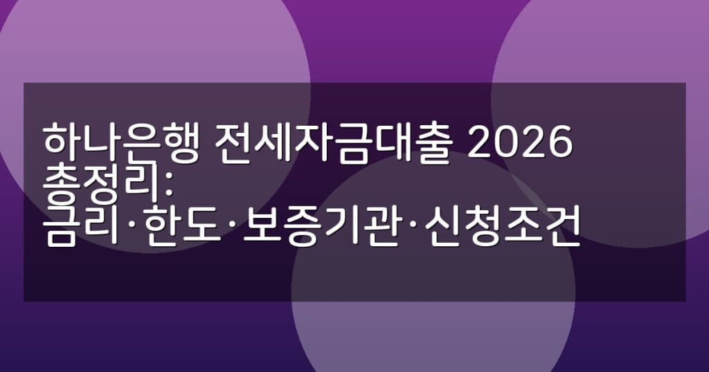2026년 하나은행 전세자금대출의 금리, 한도, 보증기관, 신청조건 및 절차를 상세히 안내합니다. 최신 비교표와 FAQ 포함.