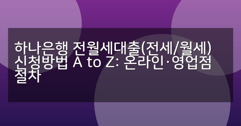 하나은행 전월세대출 신청방법을 온라인과 영업점 절차로 상세 안내합니다. 전세·월세대출 조건, 제출서류, 상환방법까지 한눈에 확인하세요.
