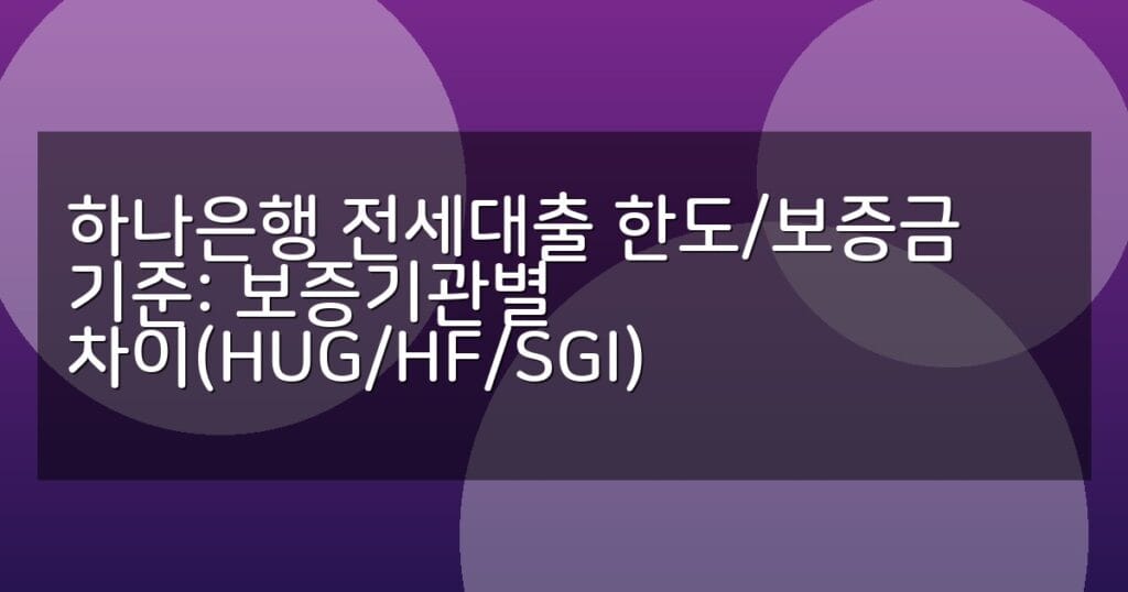 하나은행 전세대출 한도와 보증금 기준을 HUG, HF, SGI 보증기관별로 비교 분석합니다. 신청 절차와 유의사항, FAQ까지 꼼꼼히 안내해 전세대출 준비에 도움을 드립니다.