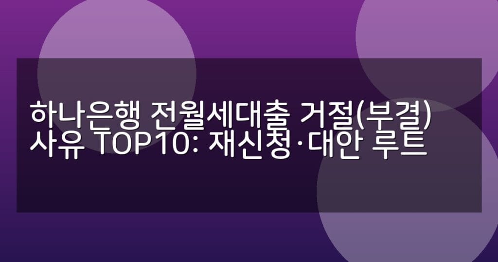 하나은행 전월세대출 거절 사유 TOP10과 재신청 방법, 대안 대출 상품 비교까지 실무 중심으로 상세 안내하는 2026년 최신 가이드입니다.