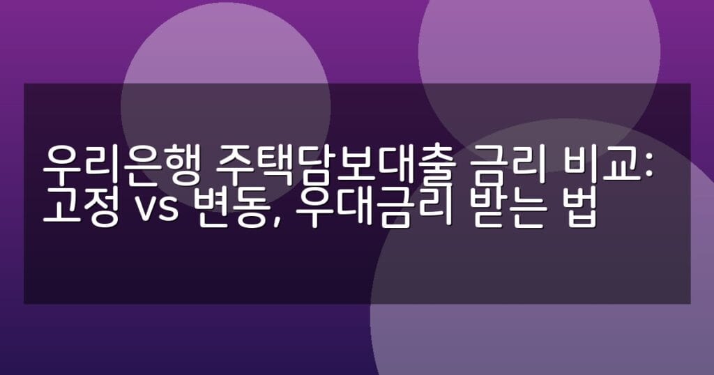 우리은행 주택담보대출의 고정금리와 변동금리 비교 및 우대금리 받는 법을 상세히 안내합니다. 금리 비교표와 신청 절차까지 한눈에 확인하세요.