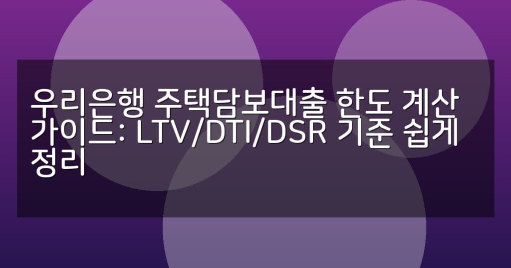 우리은행 주택담보대출 한도 계산법을 LTV, DTI, DSR 기준별로 쉽게 정리했습니다. 실전 계산법과 신청 절차, FAQ까지 한눈에 확인하세요.