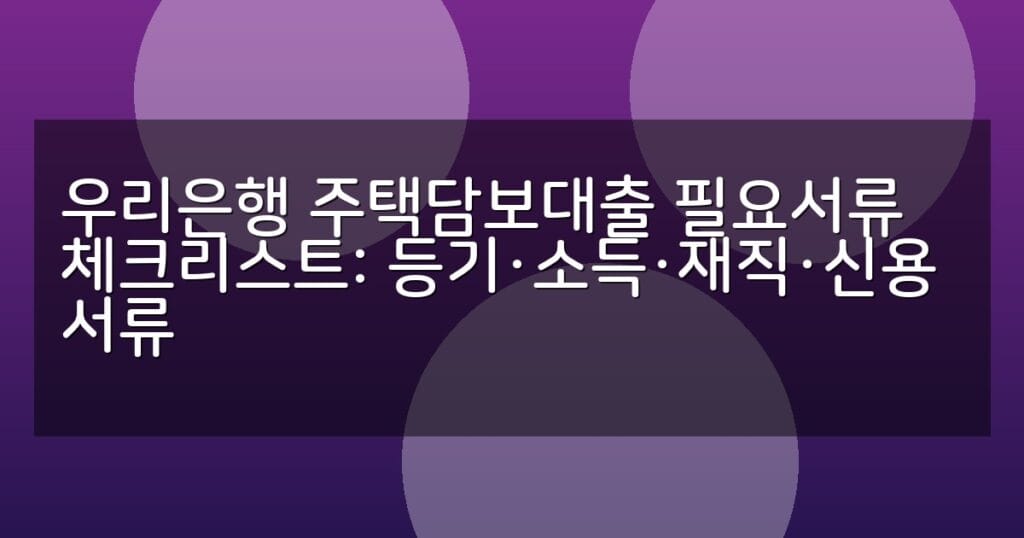 우리은행 주택담보대출에 필요한 등기, 소득, 재직, 신용 서류를 표로 정리하여 쉽게 준비할 수 있는 체크리스트와 신청 절차를 안내합니다.