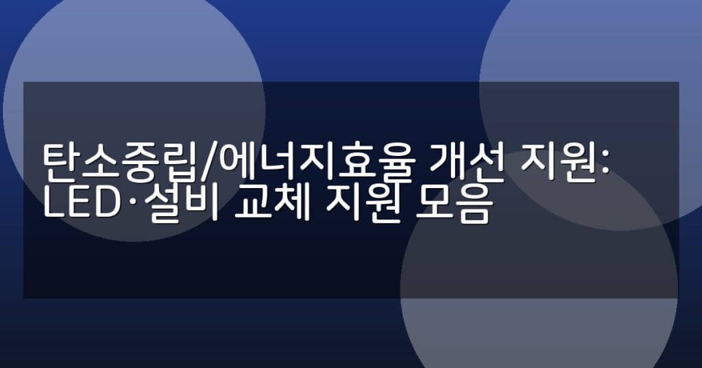 탄소중립 실현을 위한 LED 조명 및 설비 교체 지원 정책과 신청 절차, 효과 및 유의사항을 상세히 안내합니다. 정부와 지자체별 다양한 지원 사업을 한눈에 확인하세요.