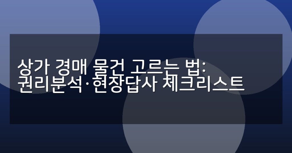 상가 경매 물건 고르는 법을 권리분석과 현장답사 체크리스트 중심으로 자세히 안내합니다. 단계별 절차와 FAQ 포함, 성공 투자 전략을 제공합니다.