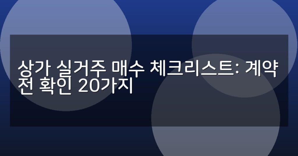 상가 실거주 매수 전 필수 확인 20가지 체크리스트를 단계별로 안내합니다. 계약서 작성, 권리분석, 현장점검 등 핵심 포인트를 꼼꼼히 살펴보세요.