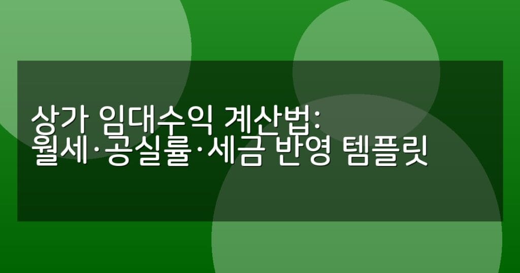 상가 임대수익 계산법을 월세, 공실률, 세금 반영 템플릿과 함께 자세히 안내합니다. 정확한 임대수익 예측과 절세 팁까지 제공하는 실무 가이드입니다.