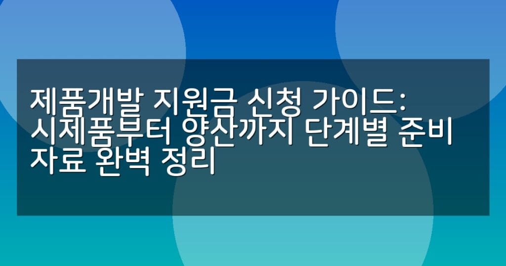 시제품 및 양산 단계별 제품개발 지원금 신청에 필요한 도면, 견적서 등 필수 자료와 단계별 절차를 상세히 안내합니다. 성공적인 지원금 수령을 위한 실무 가이드.