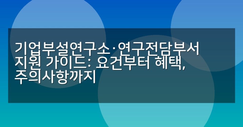 기업부설연구소와 연구전담부서 설립 요건, 신청 절차, 지원 혜택 및 주의사항을 상세히 안내합니다. 최신 정책과 FAQ 포함.