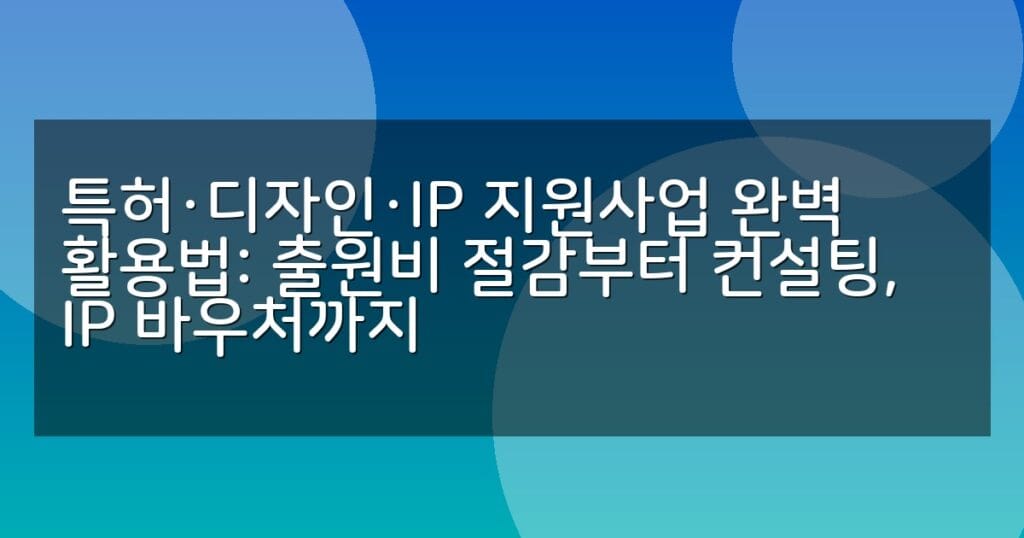 특허·디자인·IP 지원사업의 출원비, 컨설팅, IP 바우처 활용법을 단계별로 안내합니다. 중소기업과 스타트업의 권리 확보를 돕는 최신 지원 정보를 확인하세요.