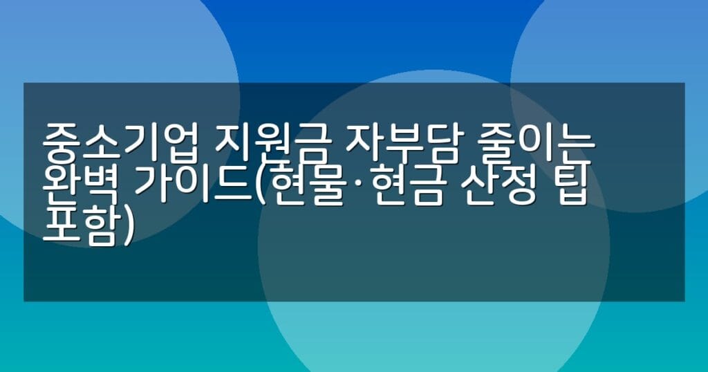 중소기업 지원금 자부담을 현물과 현금 산정법으로 줄이는 실무 가이드. 단계별 신청 절차와 기관별 주의사항까지 상세히 안내합니다.