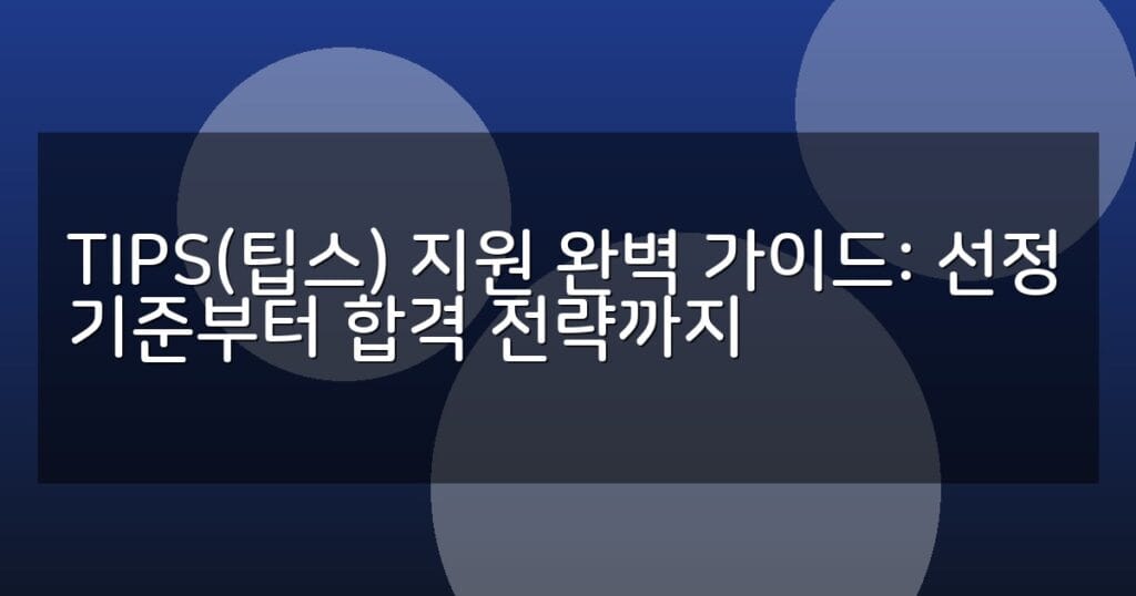 TIPS(팁스) 지원 사업의 선정 기준과 평가 항목, 신청 절차를 상세히 안내하며 합격 전략과 자주 묻는 질문까지 포괄적으로 제공합니다.