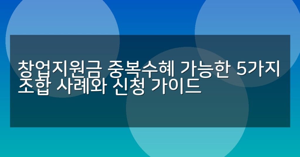 창업지원금 중복수혜가 가능한 5가지 대표 조합과 신청 절차, 유의사항을 상세히 안내합니다. 최신 지원 정책과 FAQ도 함께 확인하세요.