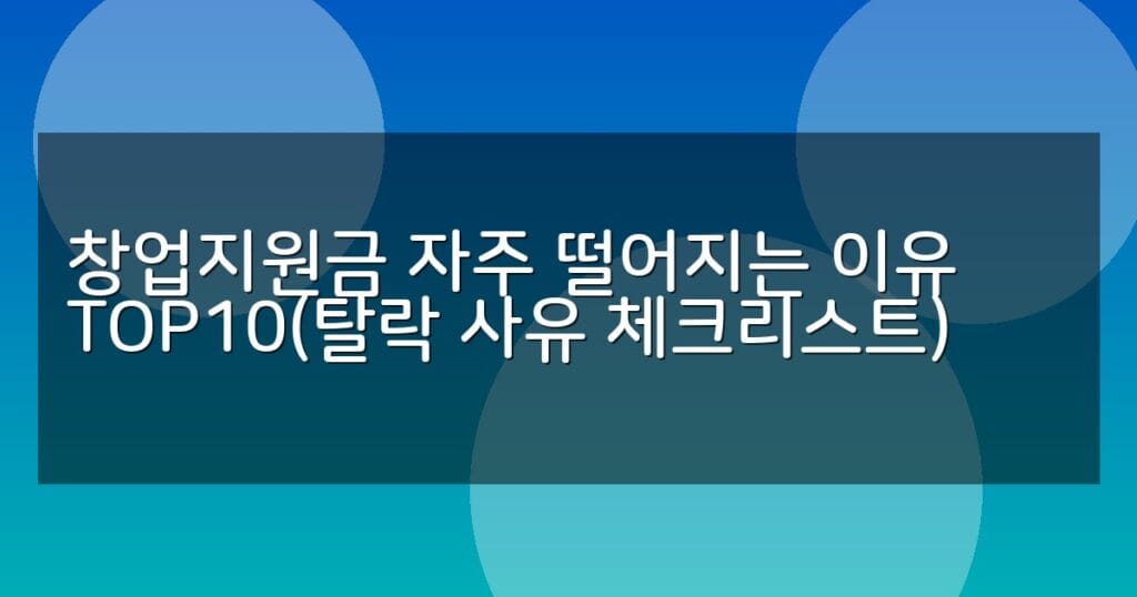 창업지원금 신청 시 자주 발생하는 탈락 사유 TOP10과 신청 절차, 실무 팁, FAQ를 상세히 안내합니다. 지원금 신청 성공 전략을 확인하세요.