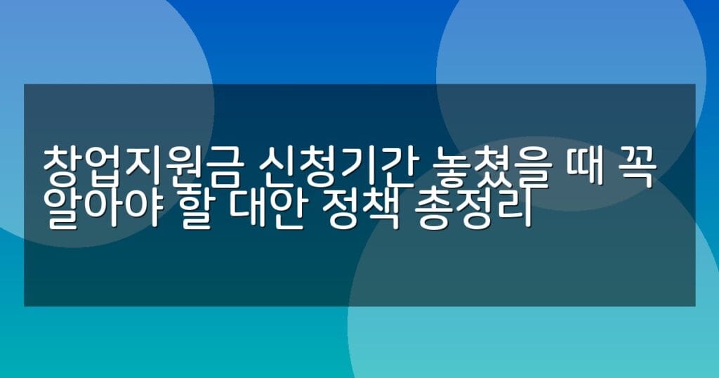 창업지원금 신청기간을 놓쳤을 때 활용 가능한 대체 정책과 사업, 신청 절차 및 지역별 차이, 유의사항을 자세히 안내합니다.