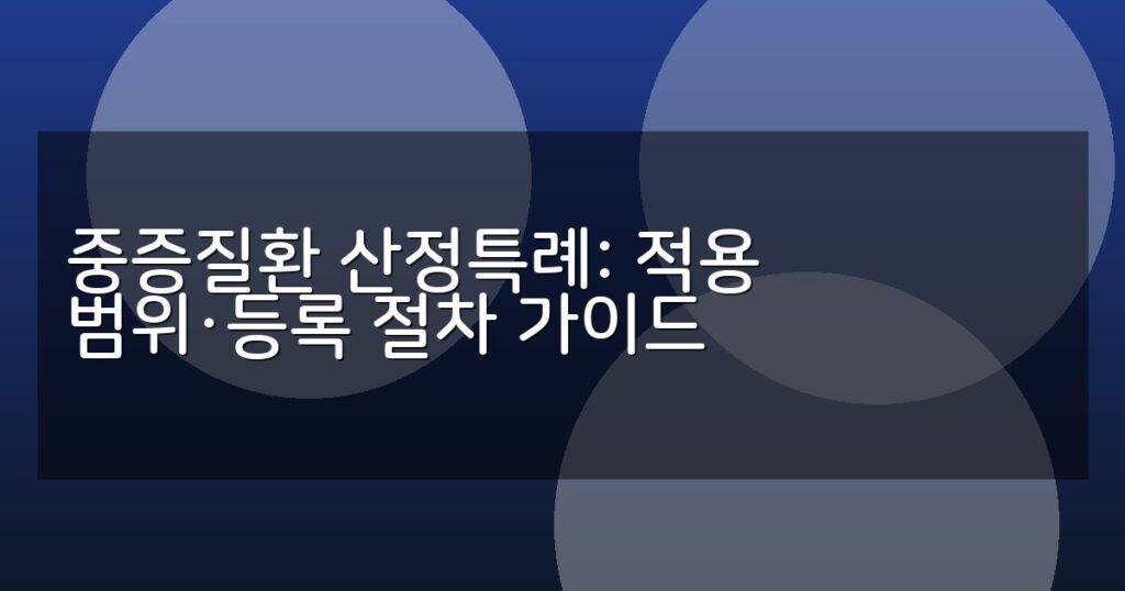 중증질환 산정특례의 적용 범위, 대상 질환, 등록 절차와 혜택을 단계별로 안내하는 실무 가이드입니다. 정확한 신청 방법과 유의 사항까지 확인하세요.