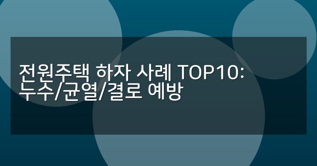 전원주택에서 흔히 발생하는 누수, 균열, 결로 등 하자 사례 TOP10과 예방 방법, 보수 지원 제도까지 실무적으로 안내합니다.