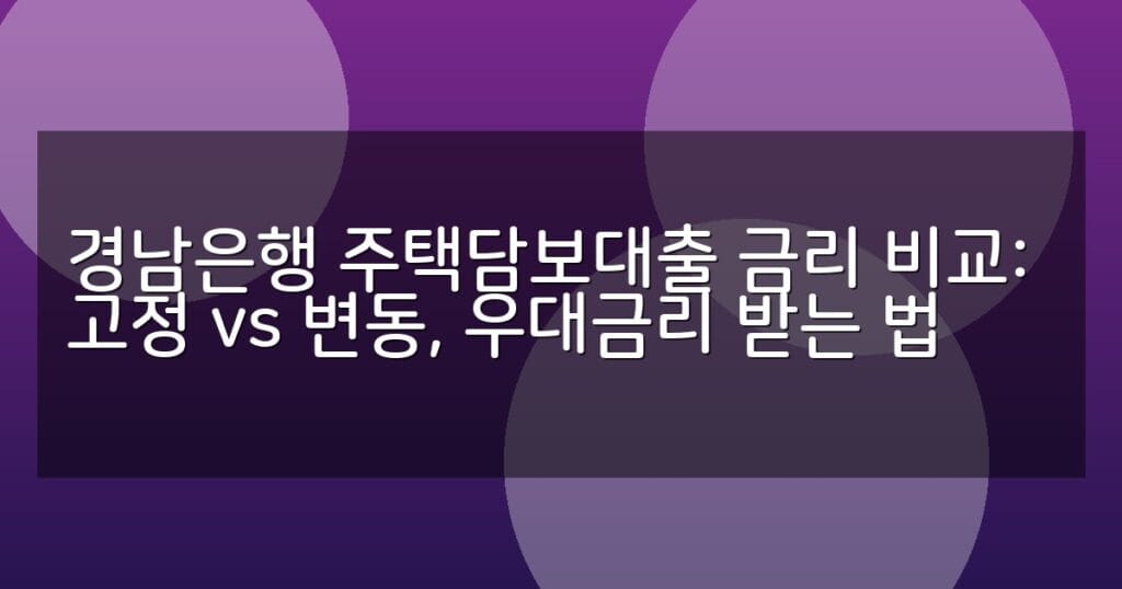 경남은행 주택담보대출의 고정금리와 변동금리를 상세 비교하고 우대금리 신청법까지 안내합니다. 최신 금리 정보와 신청 절차, FAQ 제공.