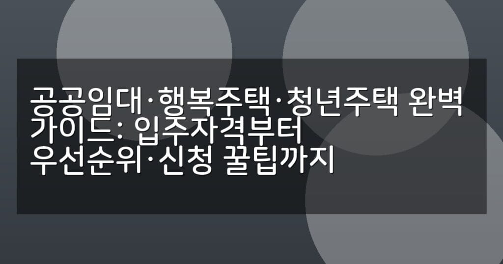 정부지원금공공임대·행복주택·청년주택 완벽 가이드: 입주자격부터 우선순위·신청 꿀팁까지 SSAK3 / 공공임대, 청년, 청년주택, 행복주택공공임대·행복주택·청년주택 입주자격과 우선순위, 신청 절차 및 꿀팁을 상세 안내합니다. 2026년 최신 정보와 FAQ 포함.