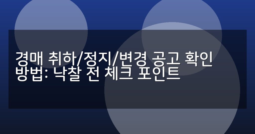 경매 취하·정지·변경 공고 확인 방법과 낙찰 전 체크 포인트를 상세 안내합니다. 공고별 비교표와 FAQ로 경매 준비를 완벽하게 하세요.