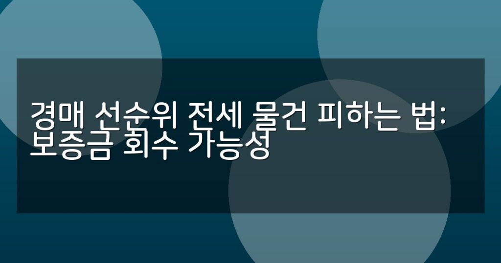 경매 선순위 전세 물건 피하는 법과 보증금 회수 가능성을 높이는 전략을 단계별로 안내합니다. 경매 전세권 위험요소 및 법적 절차 완벽 정리.