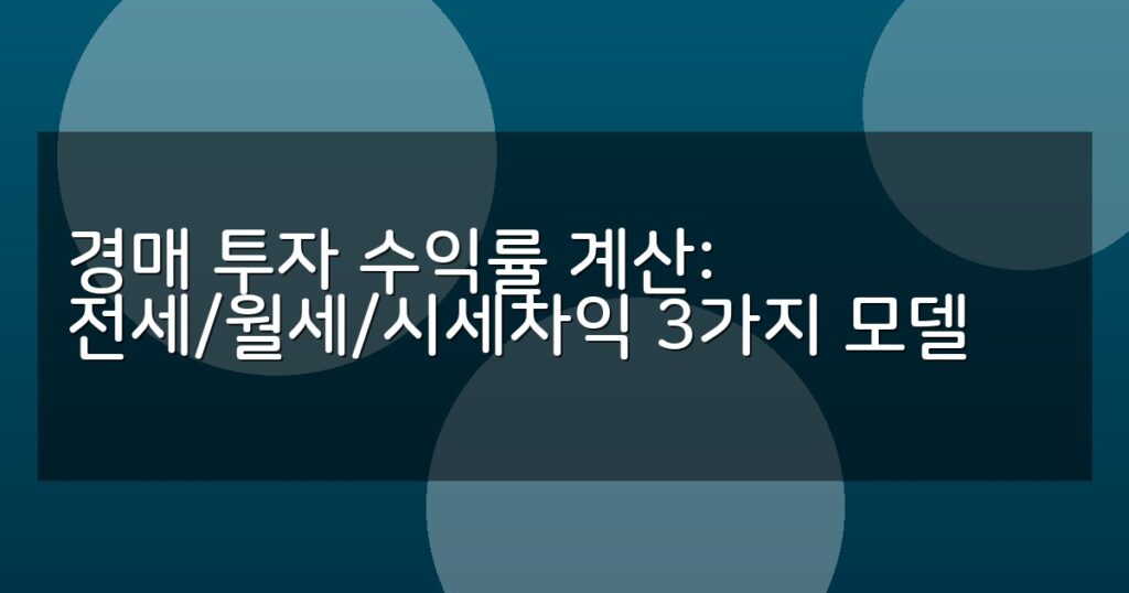 경매 투자 수익률 계산법을 전세, 월세, 시세차익 3가지 모델별로 상세히 분석합니다. 다양한 표와 사례로 투자 전략 수립에 도움을 드립니다.