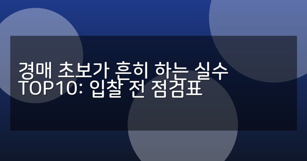 경매 초보가 흔히 하는 실수 TOP10과 입찰 전 점검표를 상세히 안내합니다. 실전 대비를 위한 필수 체크리스트와 전략을 확인하세요.
