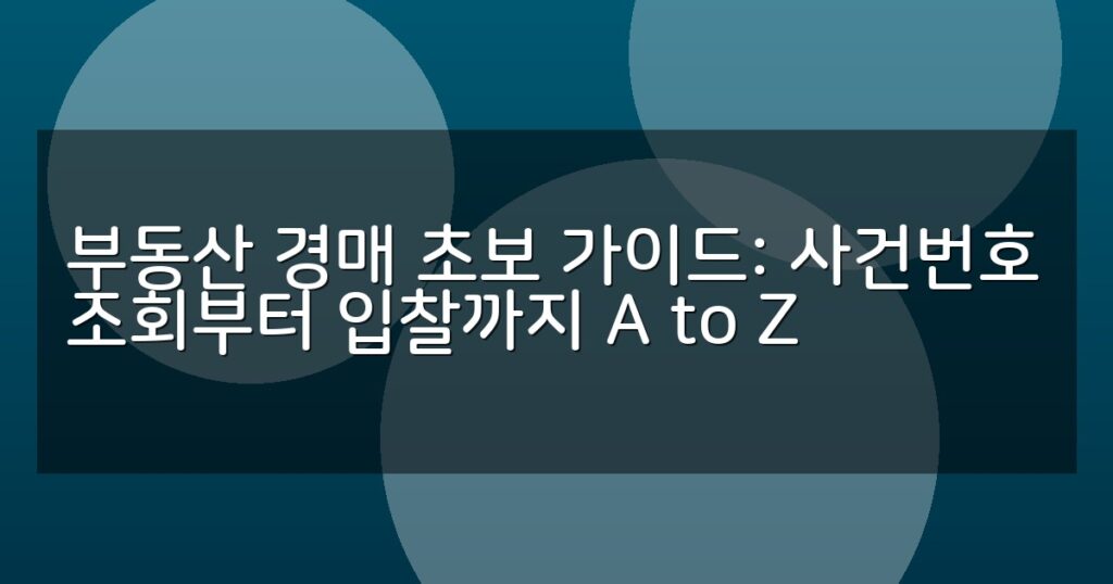 부동산 경매 초보자를 위한 종합 가이드. 사건번호 조회부터 입찰 준비, 절차, 전략까지 단계별로 상세히 안내합니다.