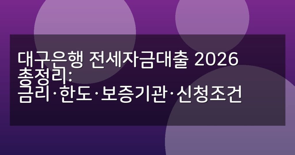 대구은행 전세자금대출 2026년 최신 금리, 한도, 보증기관, 신청 조건을 상세히 안내합니다. 단계별 신청 절차와 FAQ로 쉽고 빠르게 준비하세요.